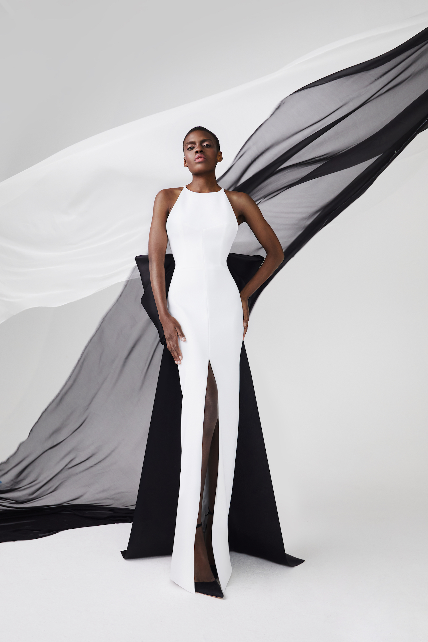 Платье макси из крепа с бантом из органзы