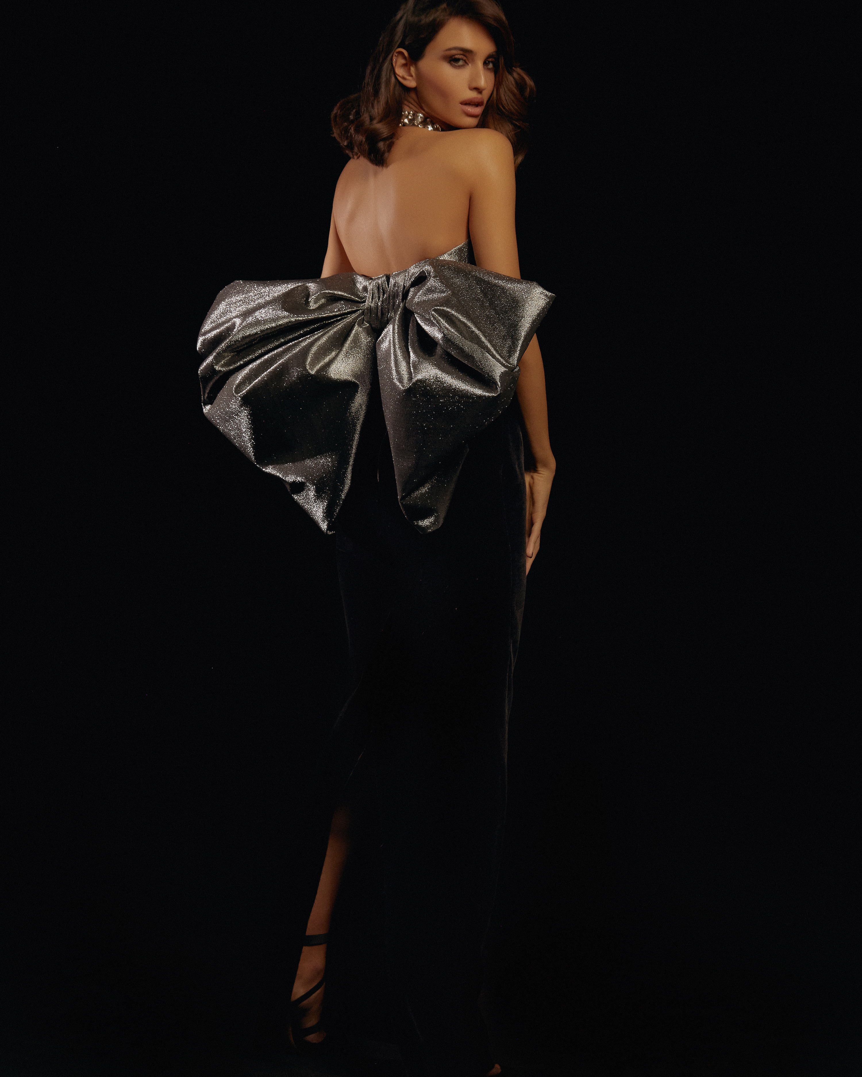 - Платье макси корсетное из бархата и люрекса с бантом