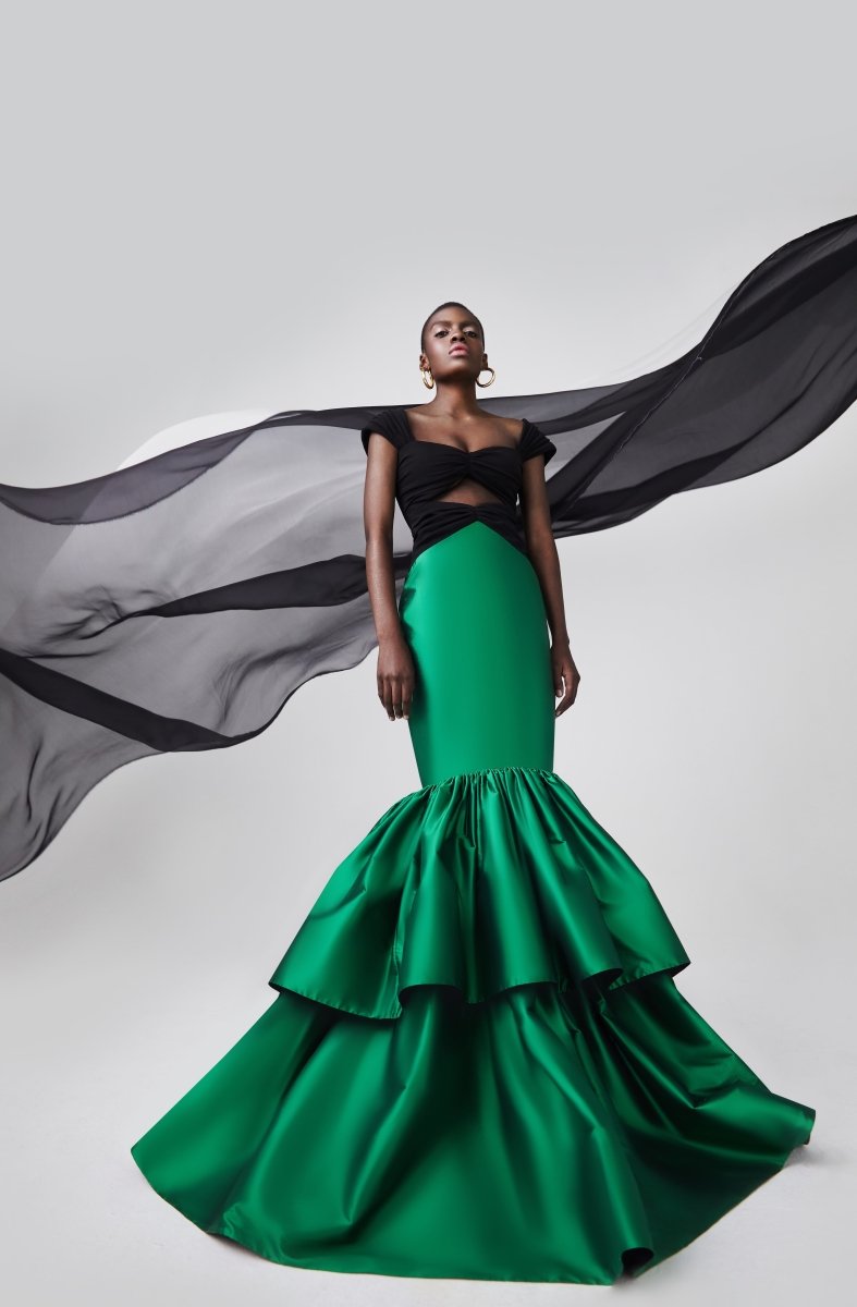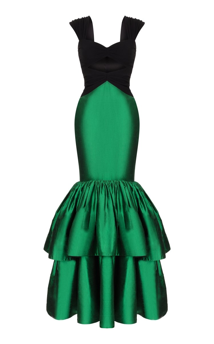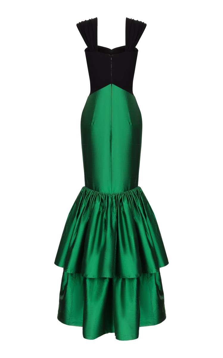 - Платье макси драпированное из крепа с объемной юбкой из шелка