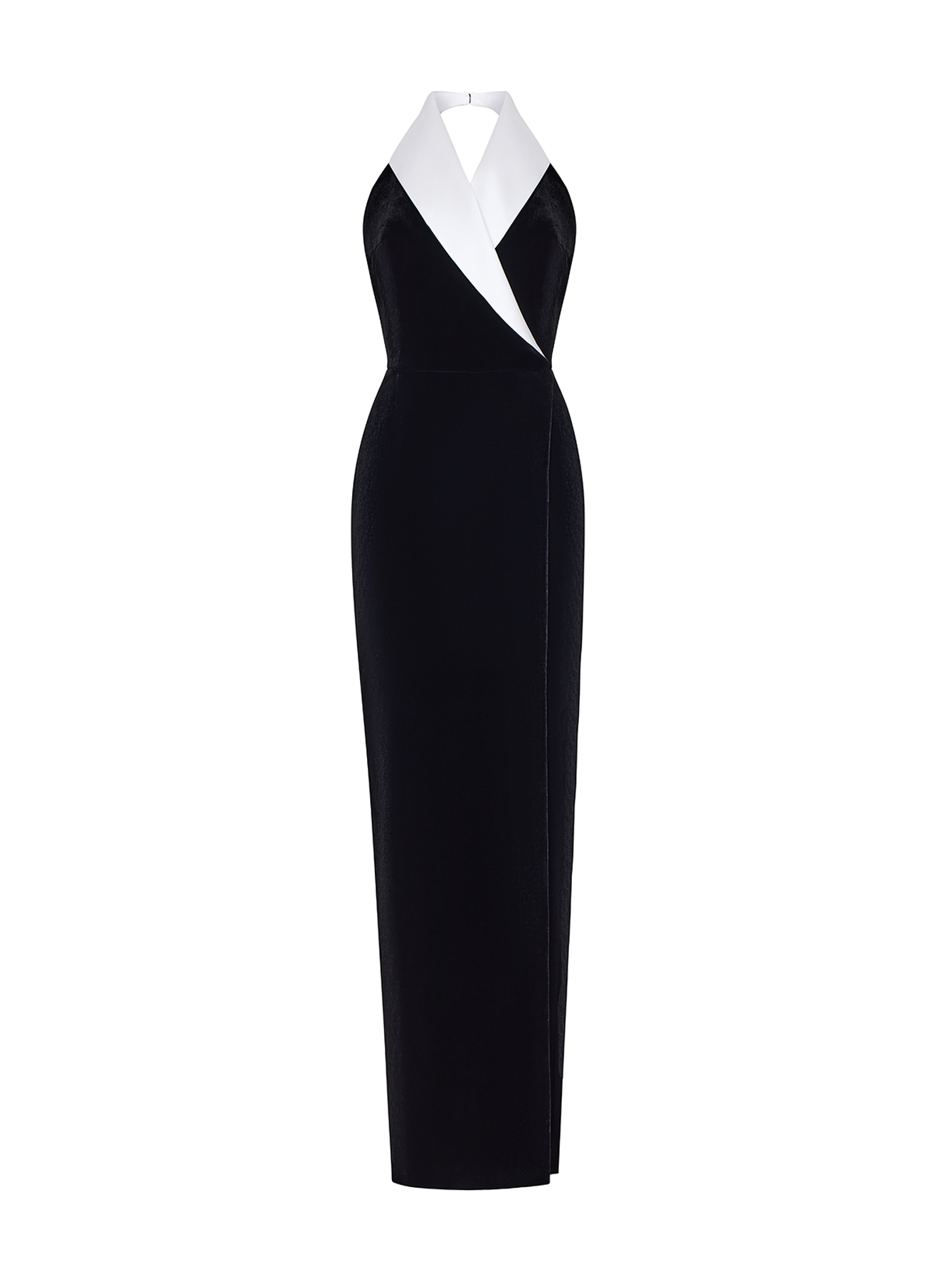 - Платье макси из крепа и сатина с разрезом