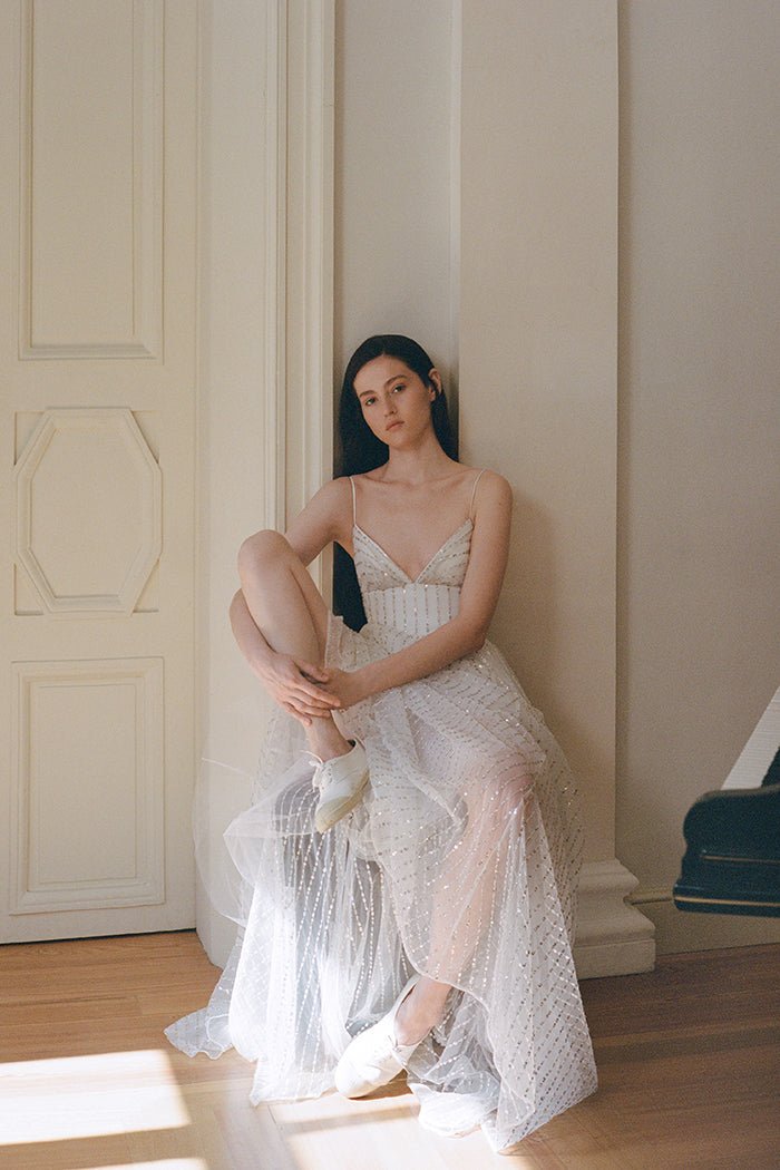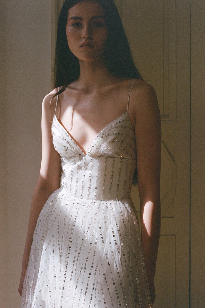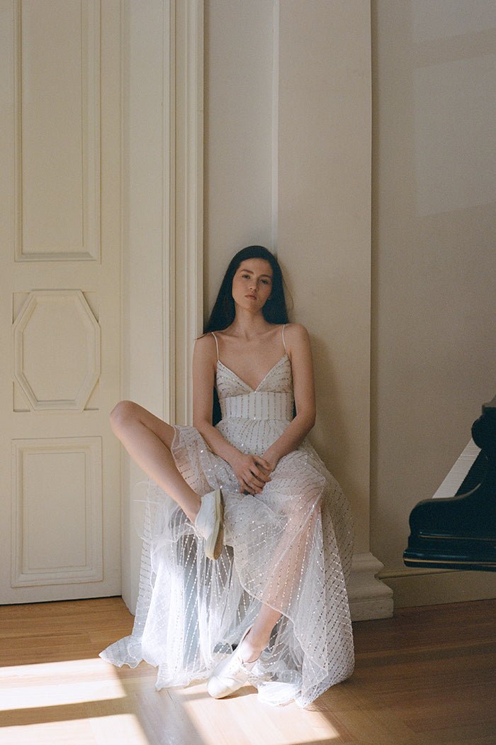 Платье макси из сетки с пайетками