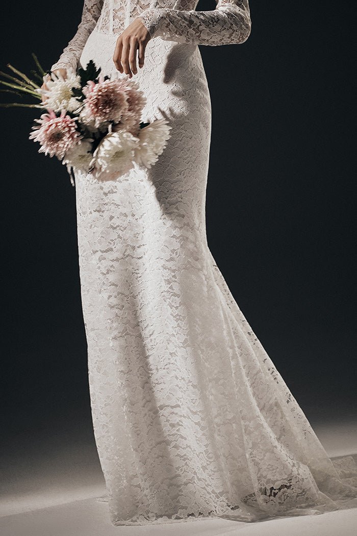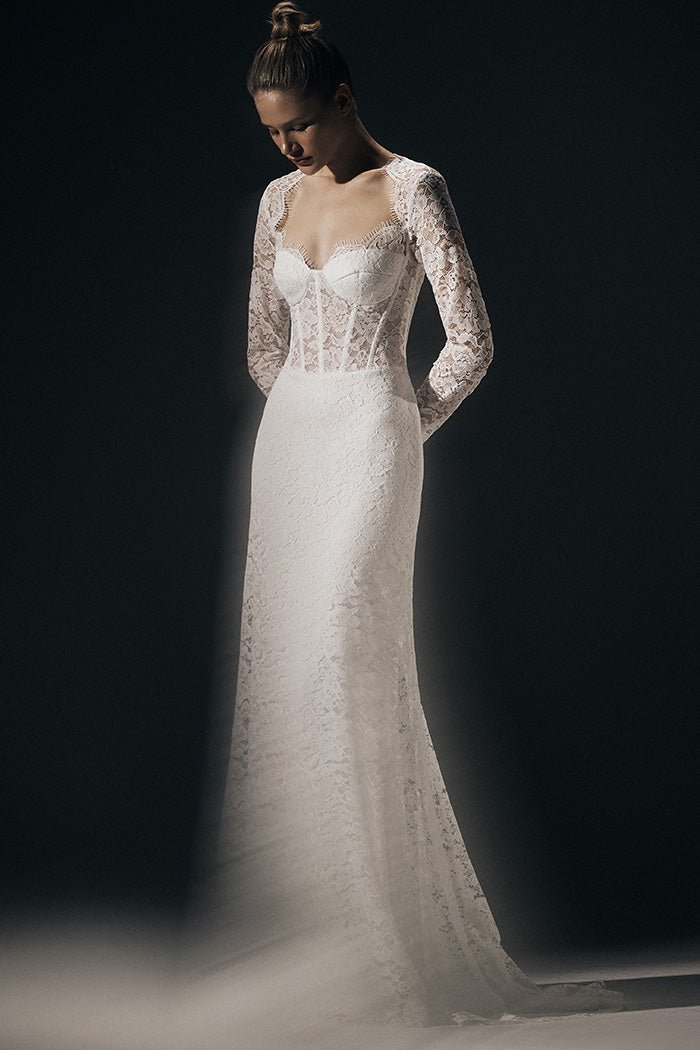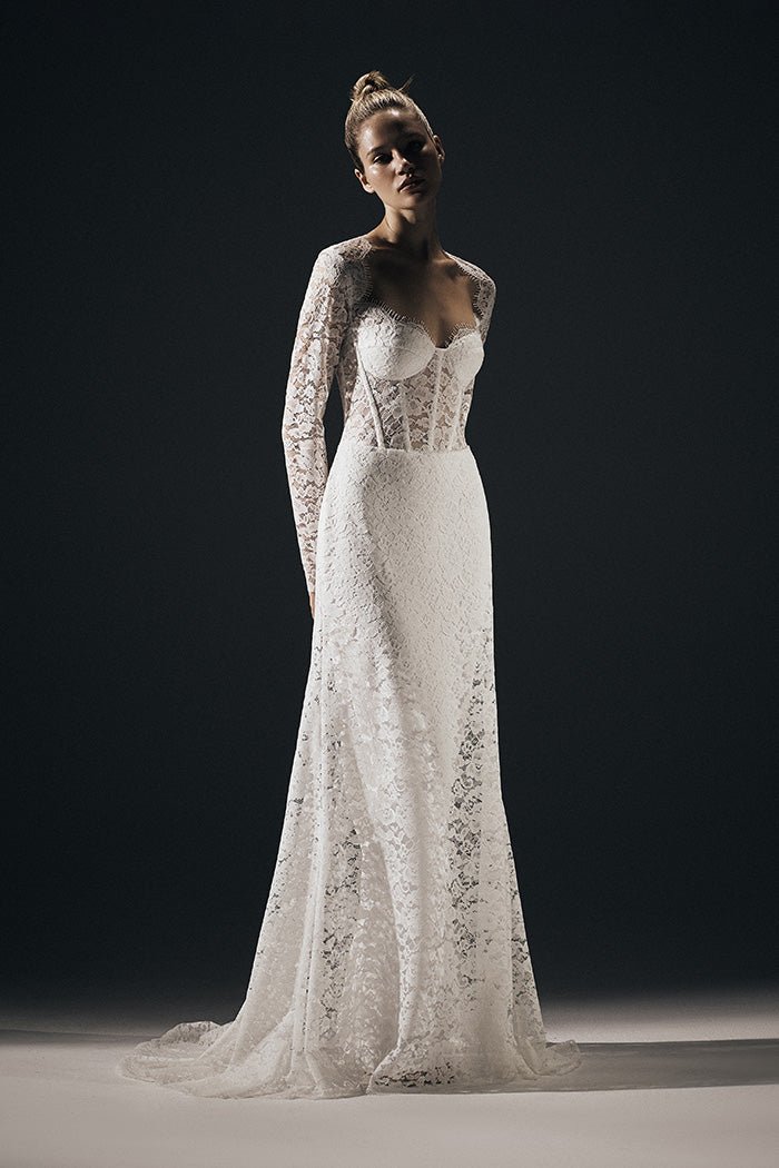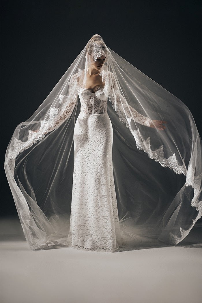 Платье макси корсетное из кружева со шлейфом