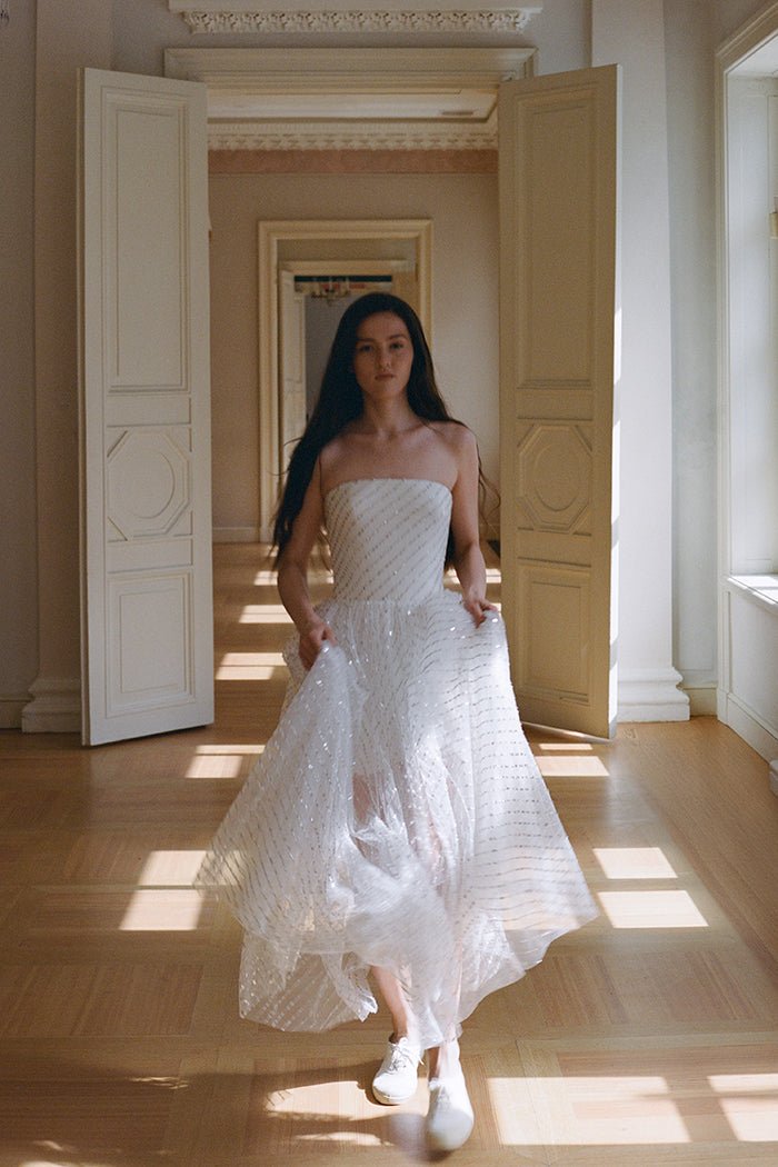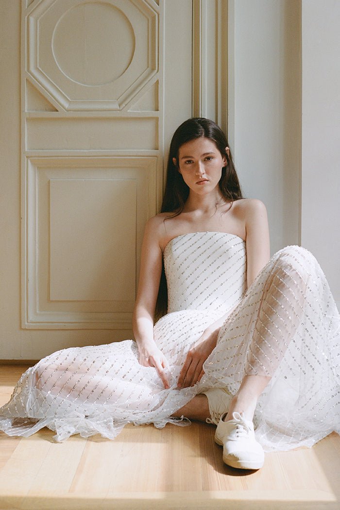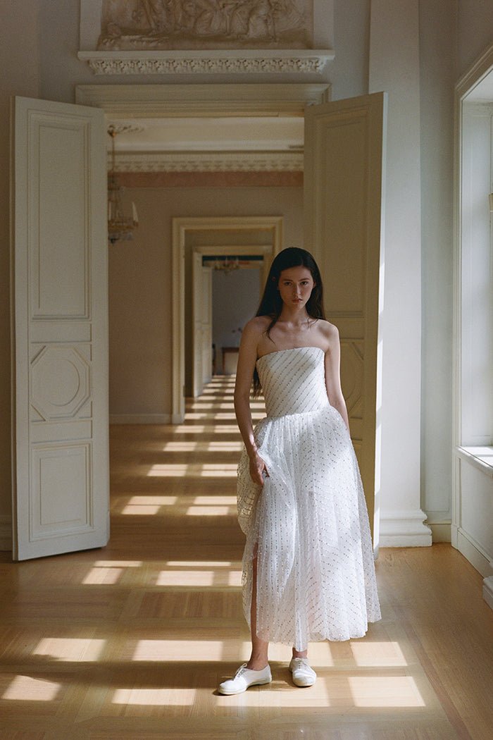 Платье миди из сетки с пайетками