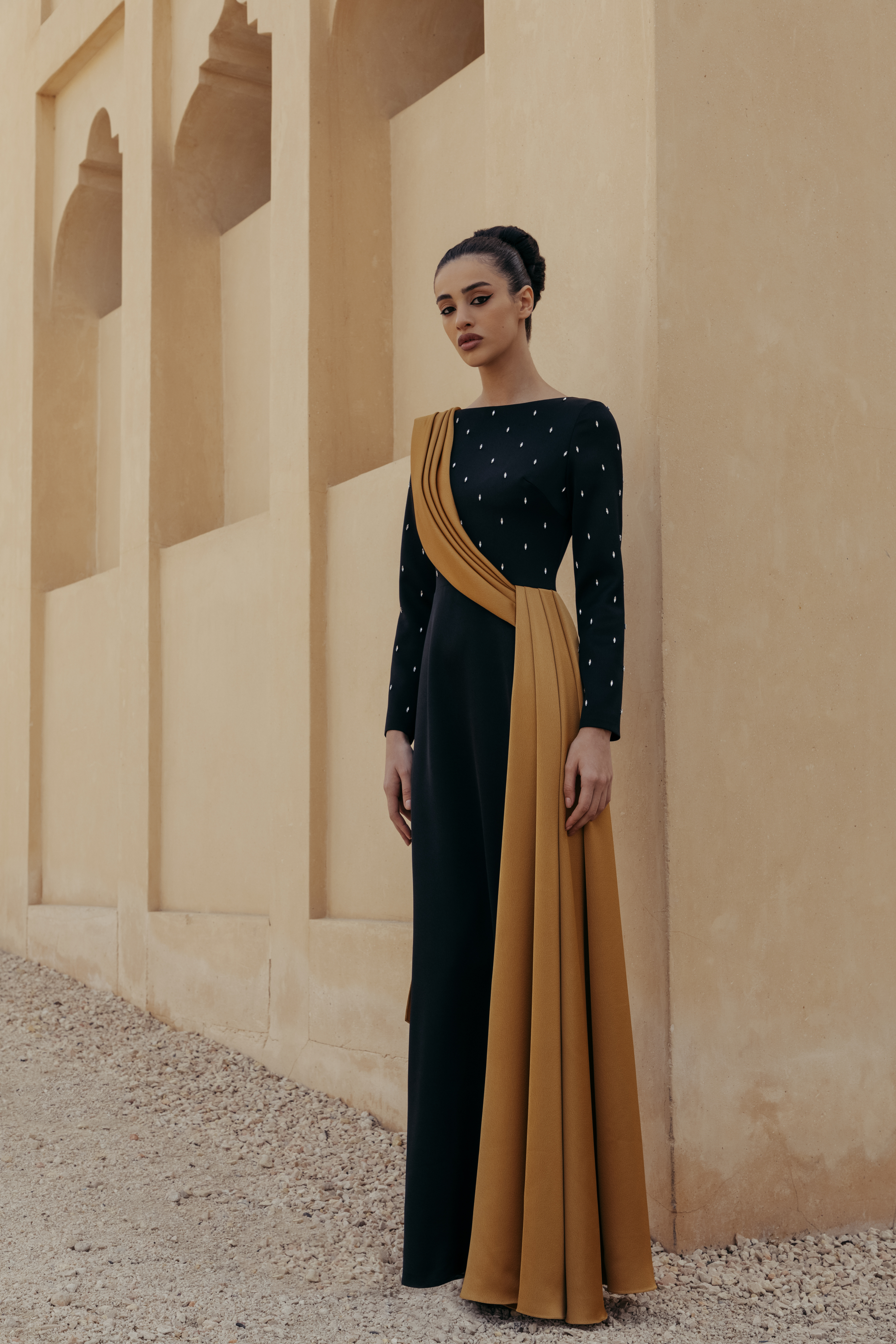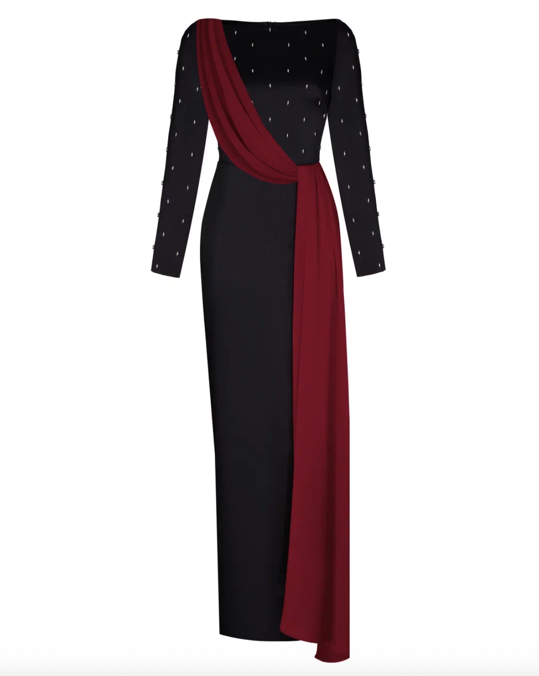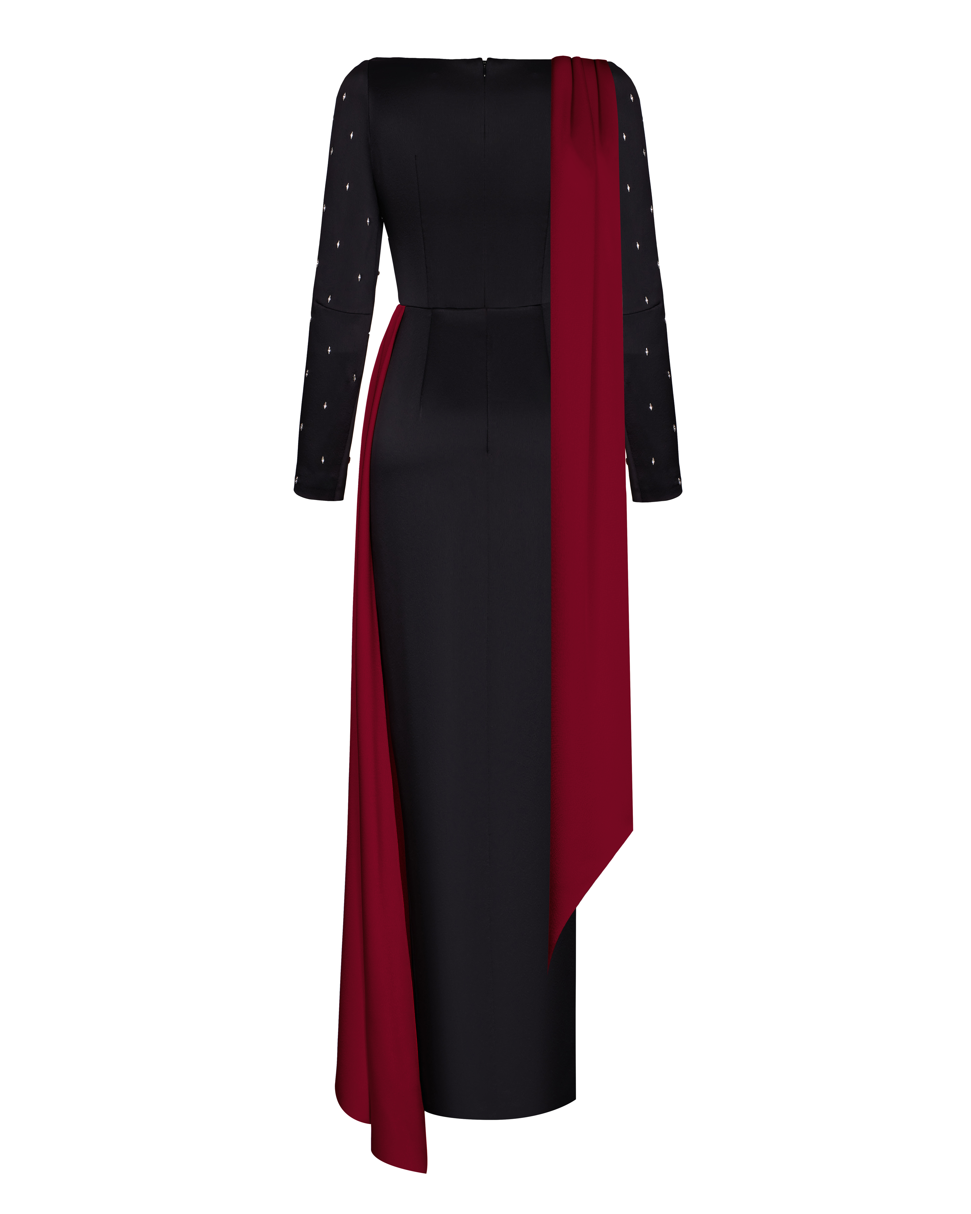 Платье макси сатиновое с асимметричной драпировкой и вышивкой