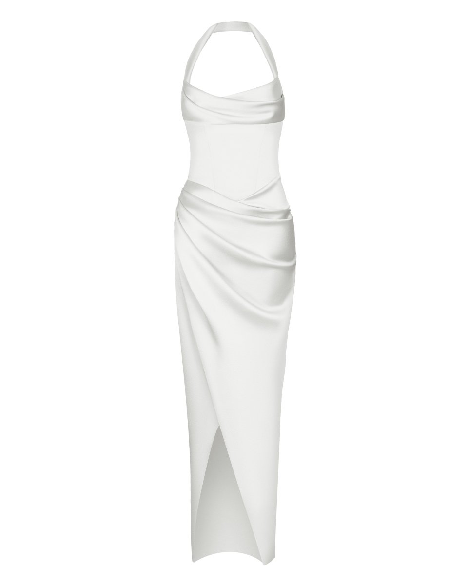 Платье макси из сатина драпированное с бретелями