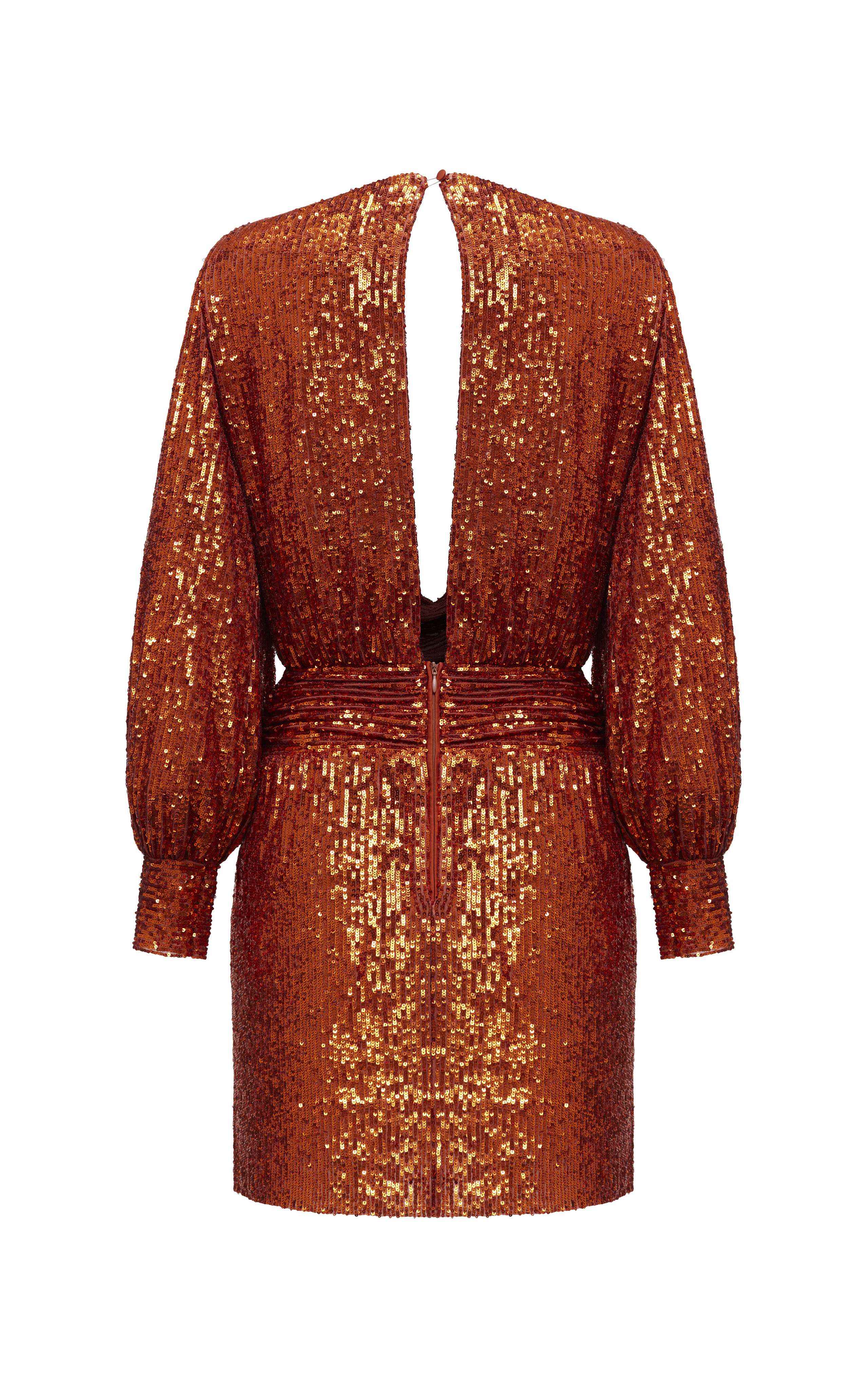 Платье мини из пайеток драпированное с длинными рукавами