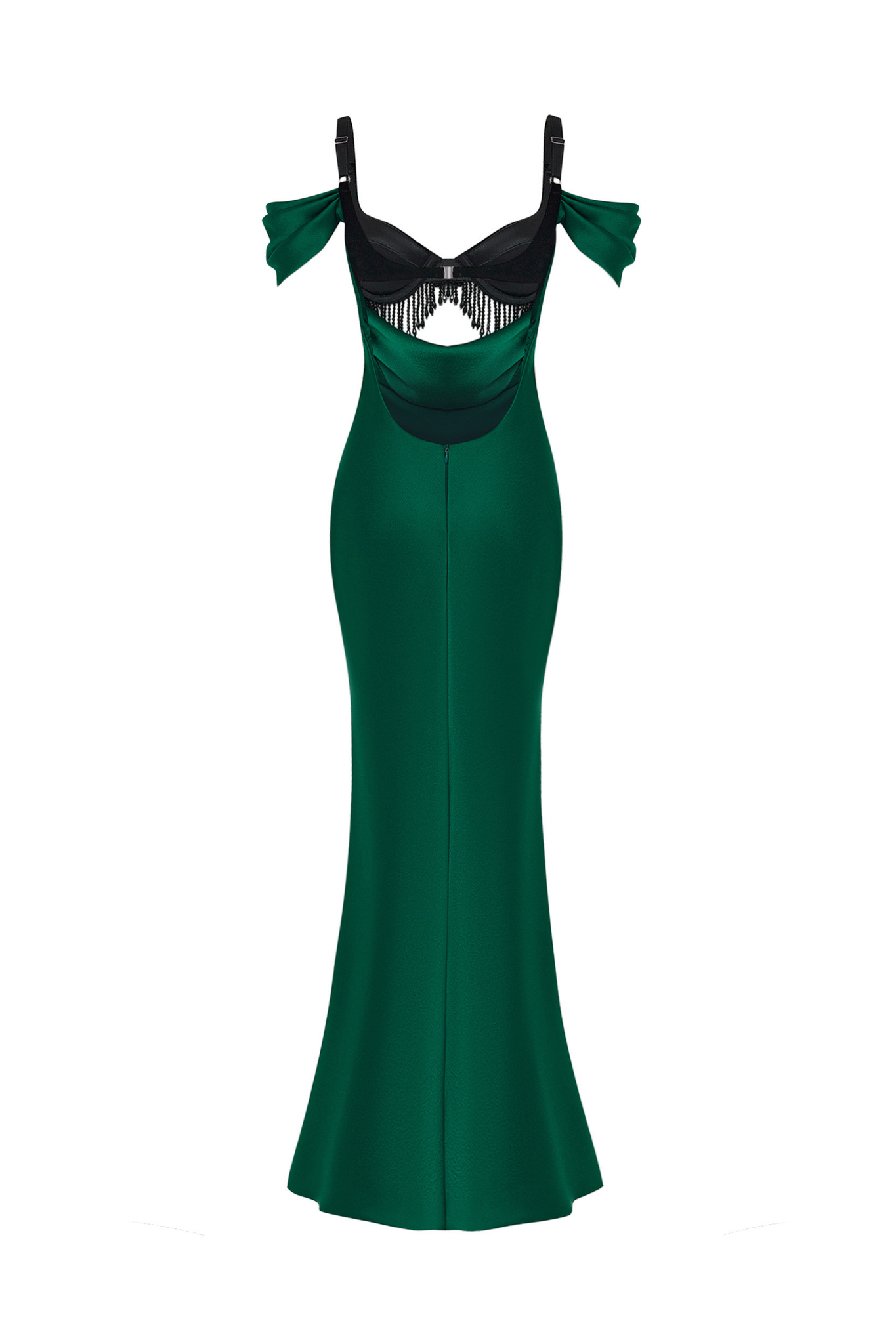 Платье миди из бархата и сатина с бахромой
