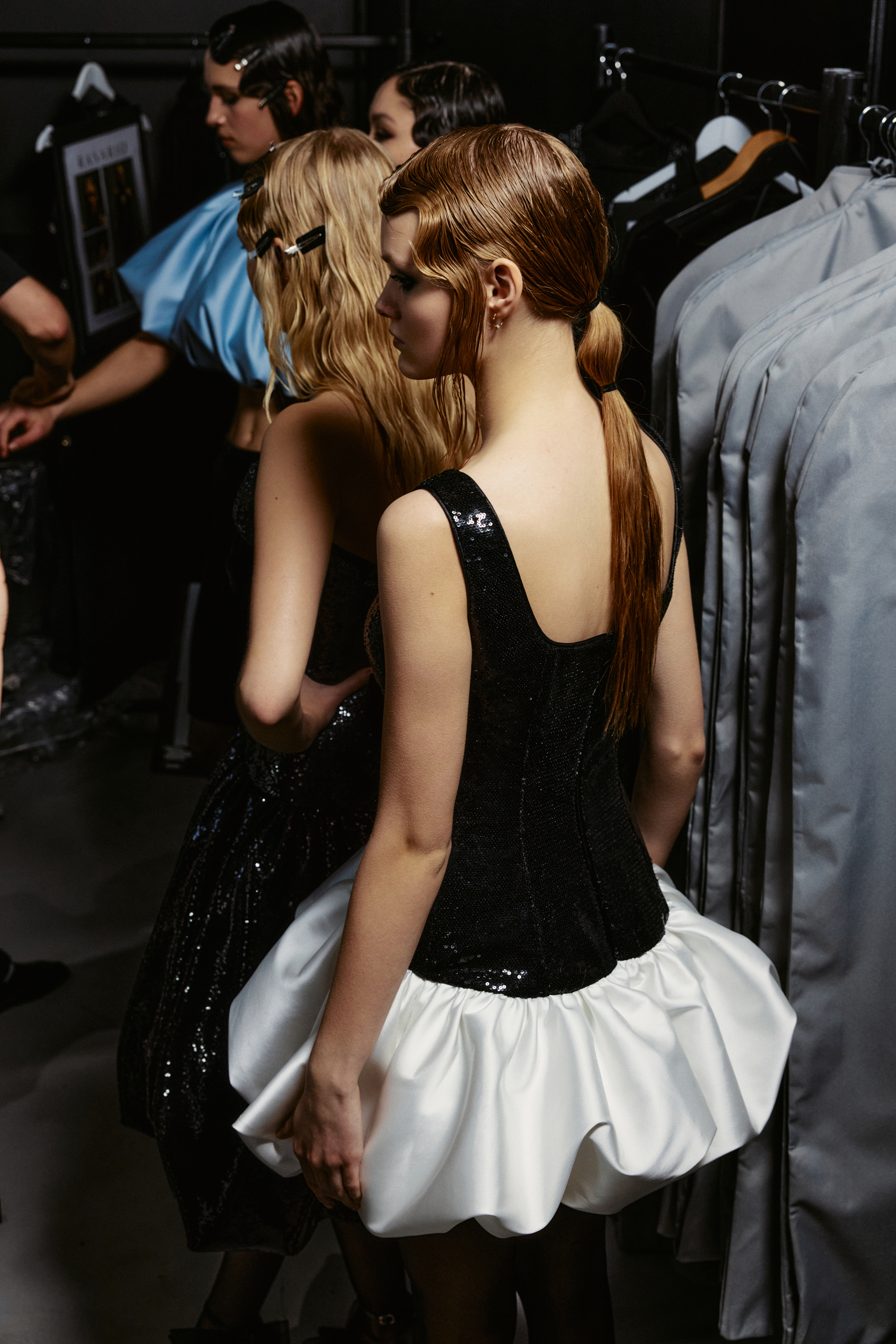 Платье мини из атласа и пайеток с декоративными элементами