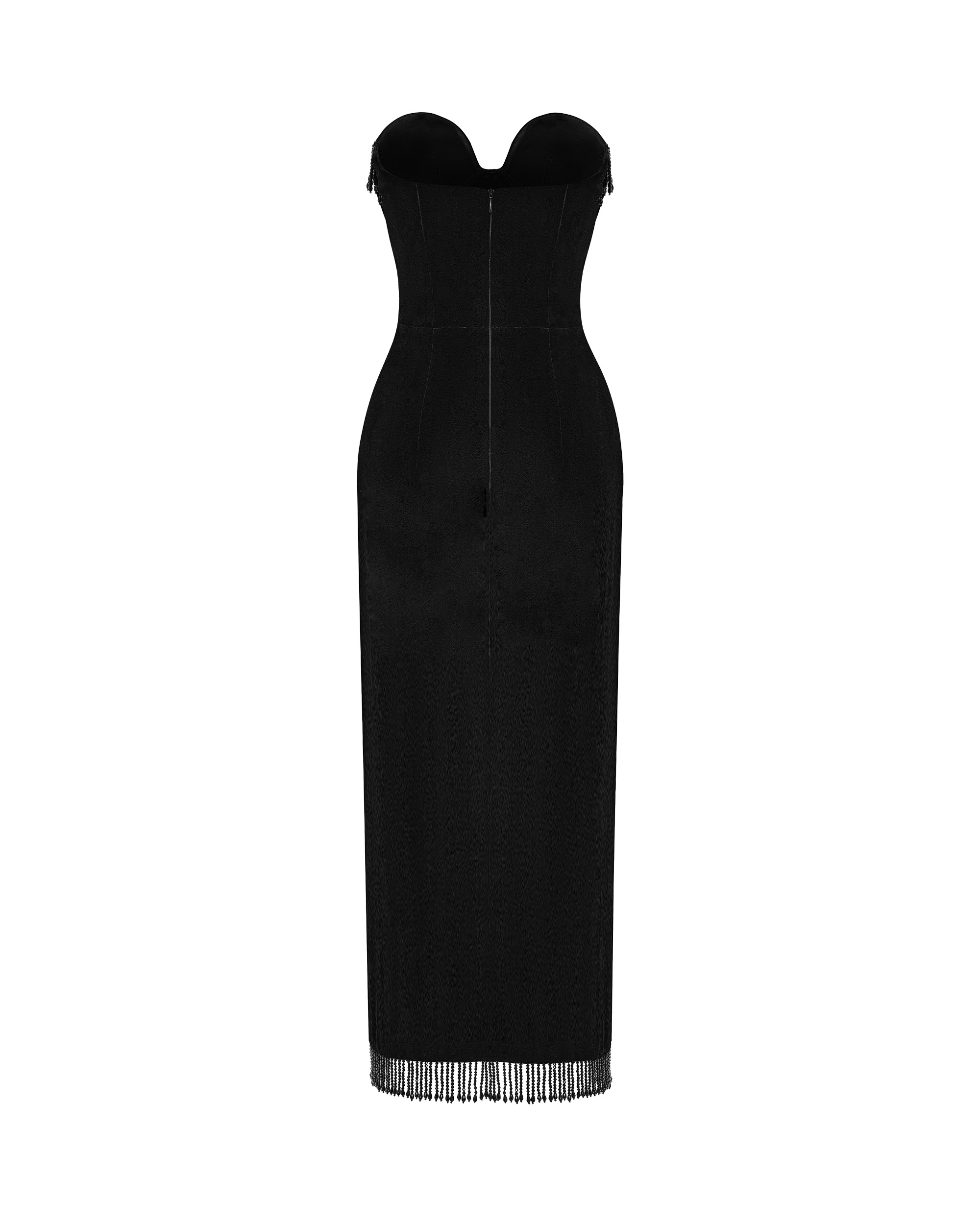 Платье макси из бархата с бахромой