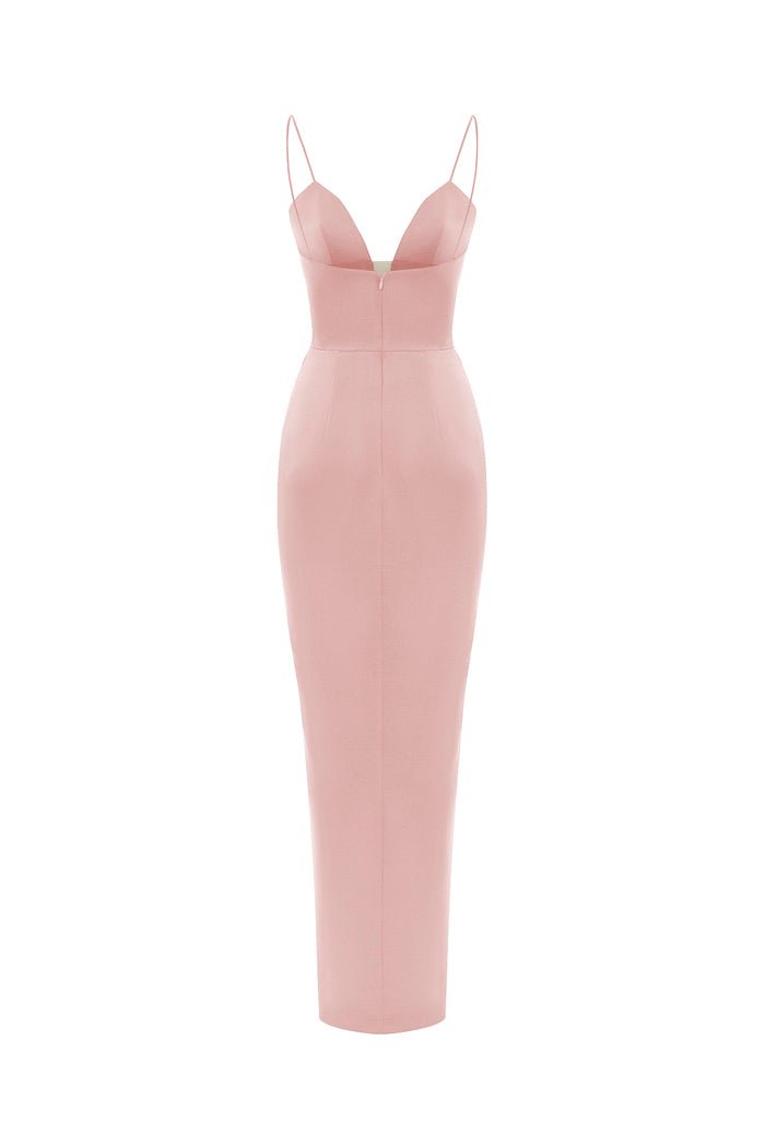 Платье макси драпированное из сатина с разрезом