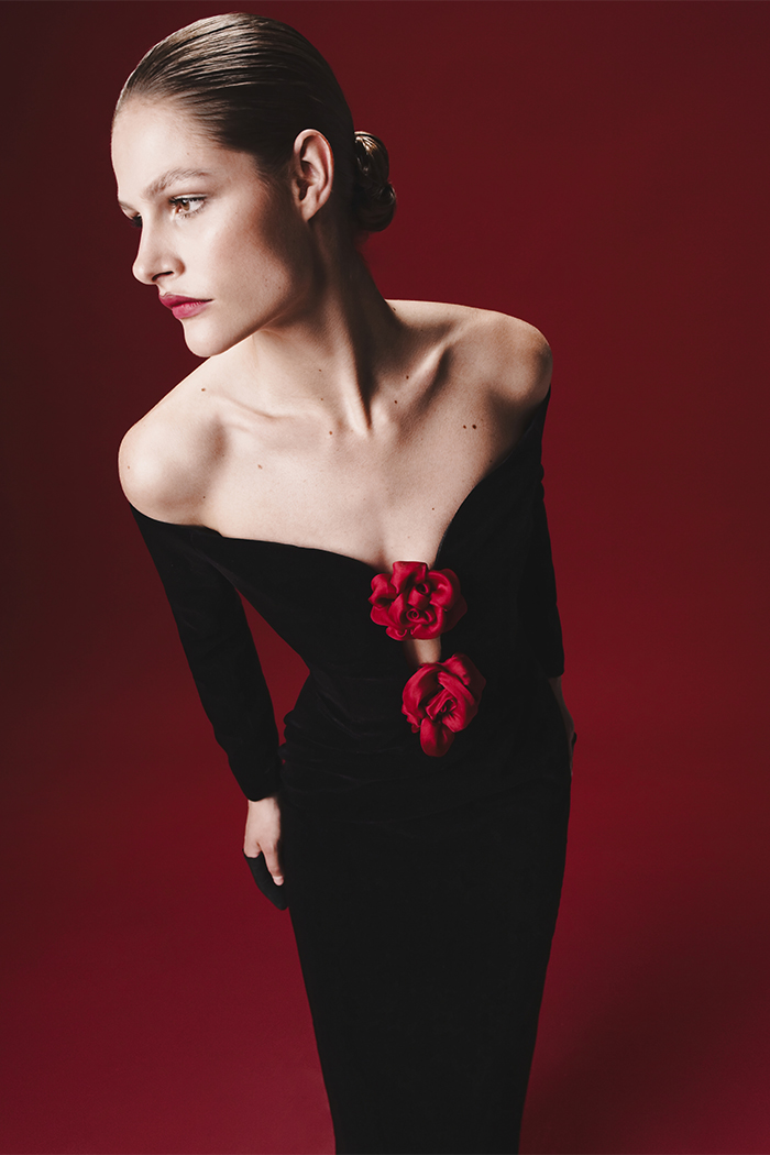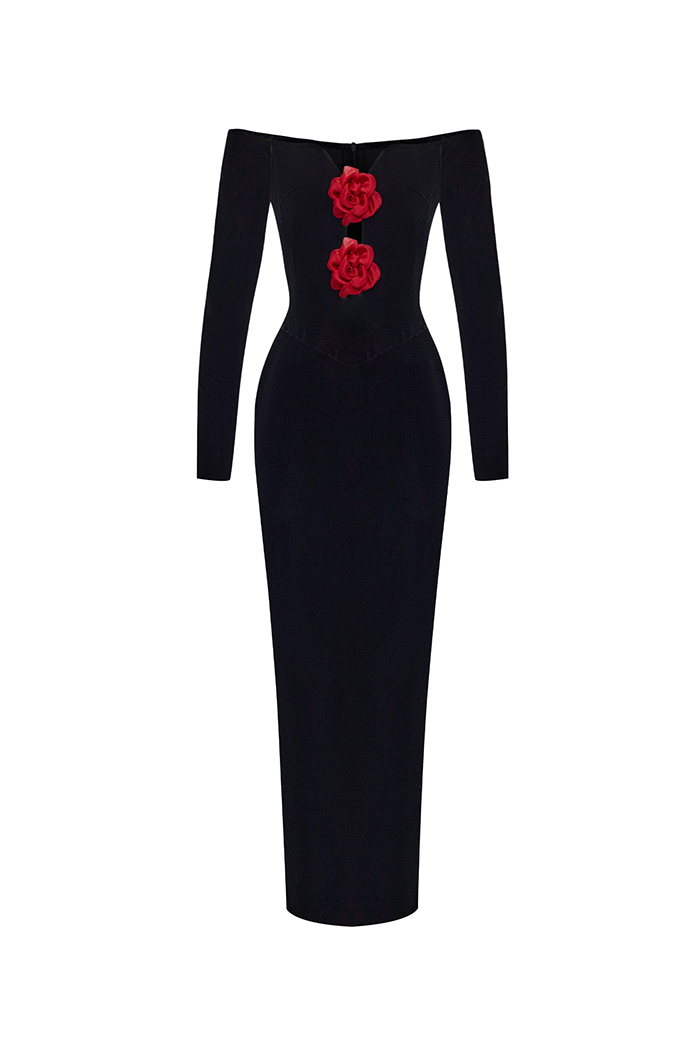 Платье миди из бархата с цветами
