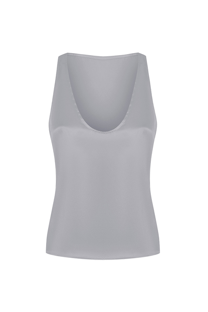Топ из гладкого шелка с акцентом на элегантный глубокий вырез. Тонкие, минималистичные линии и мягкий блеск материала придают этому топу женственный вид. Благодаря легкому прилегающему силуэту, он подчеркивает формы, оставаясь при этом комфортным. Прекрасно сочетается с жакетами из новой коллекции, создавая образы для особых случаев.