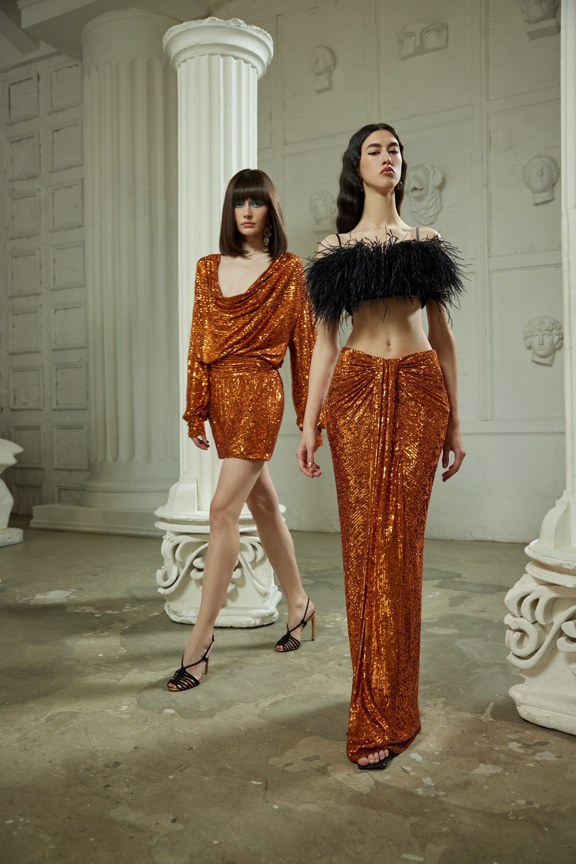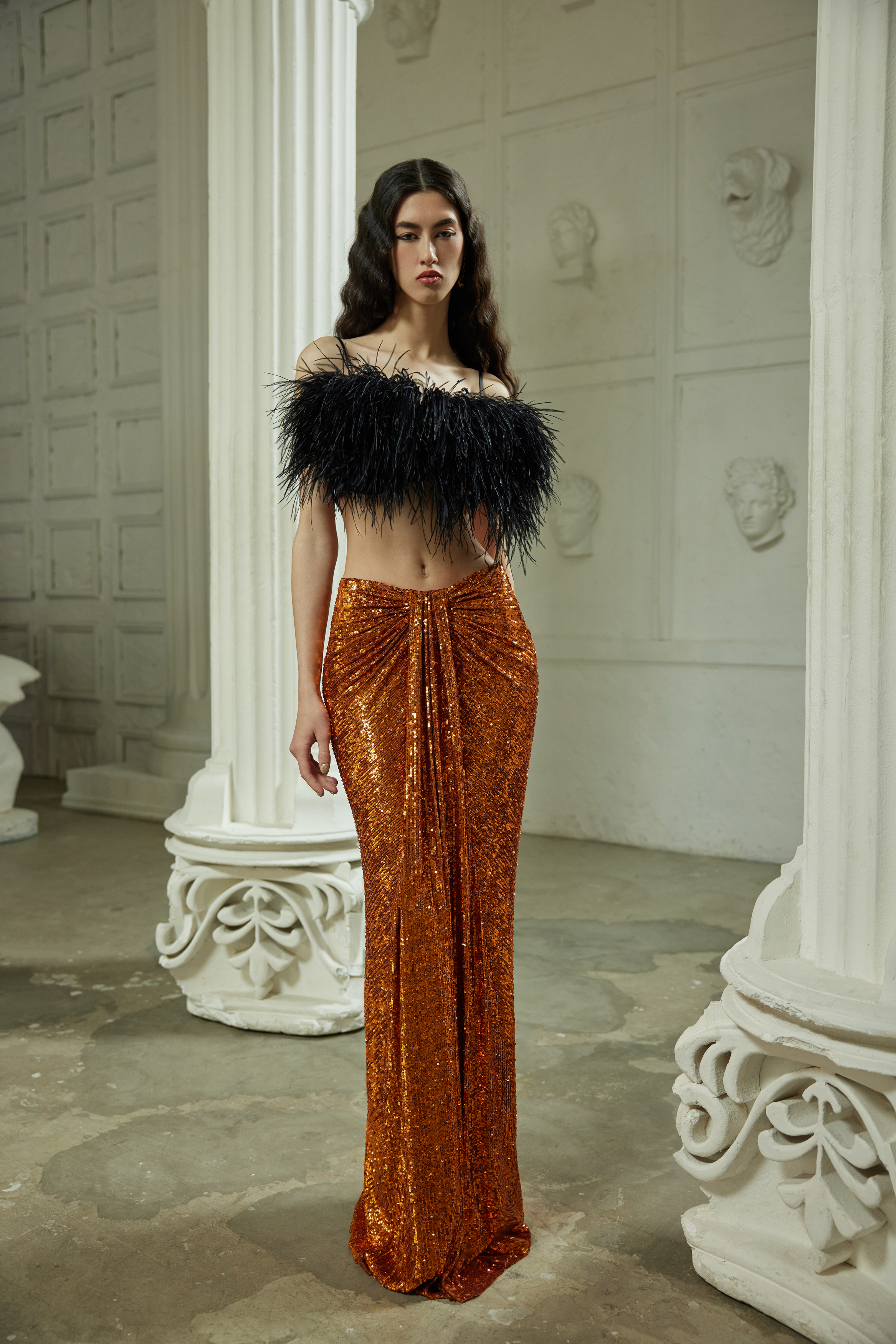 Юбка макси драпированная из пайеток